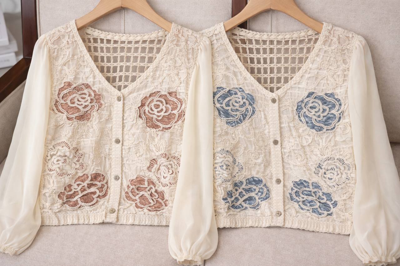 شومیز کراپ قلاب بافی وارداتی در دو رنگ