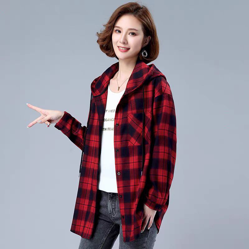 شومیز مانتویی چهارخونه نخی بلند دو رنگ