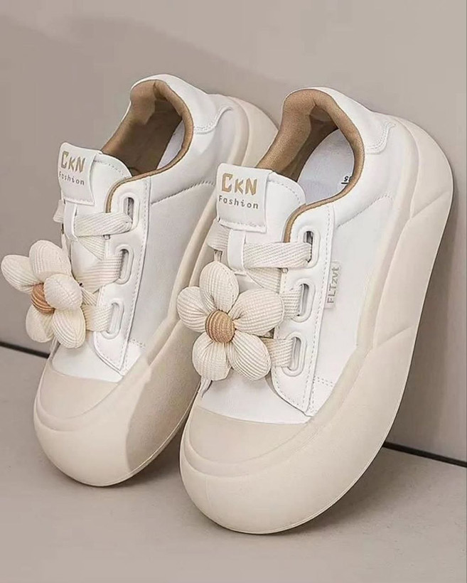 طراحی خاص با بند گلدار که جلوهای متفاوت و دخترانه به کفش داده است.