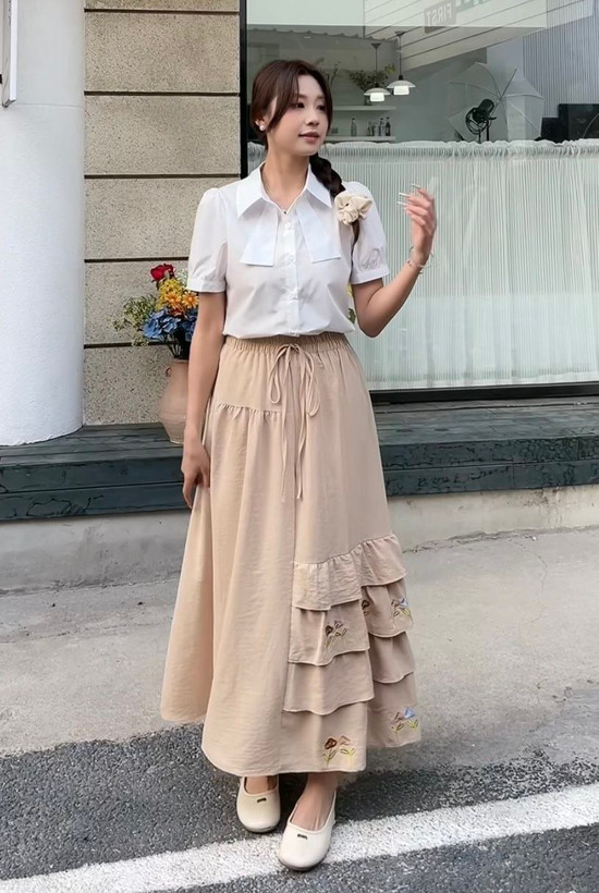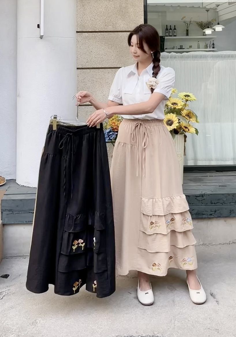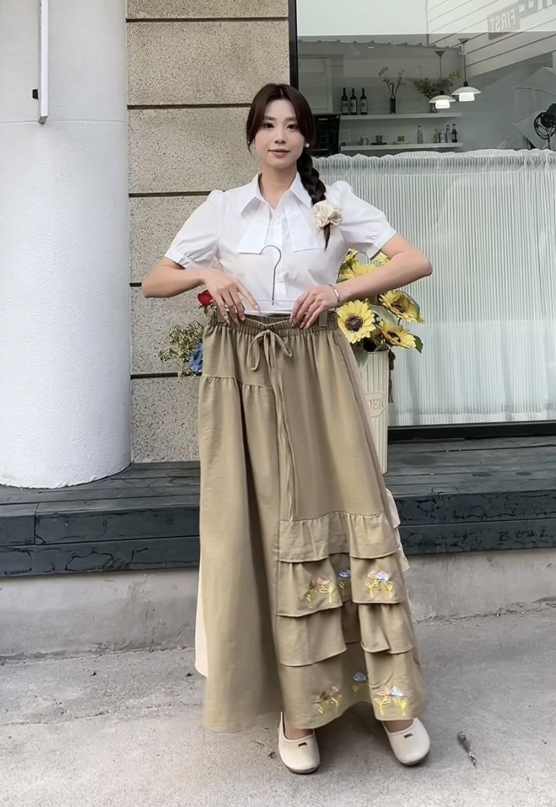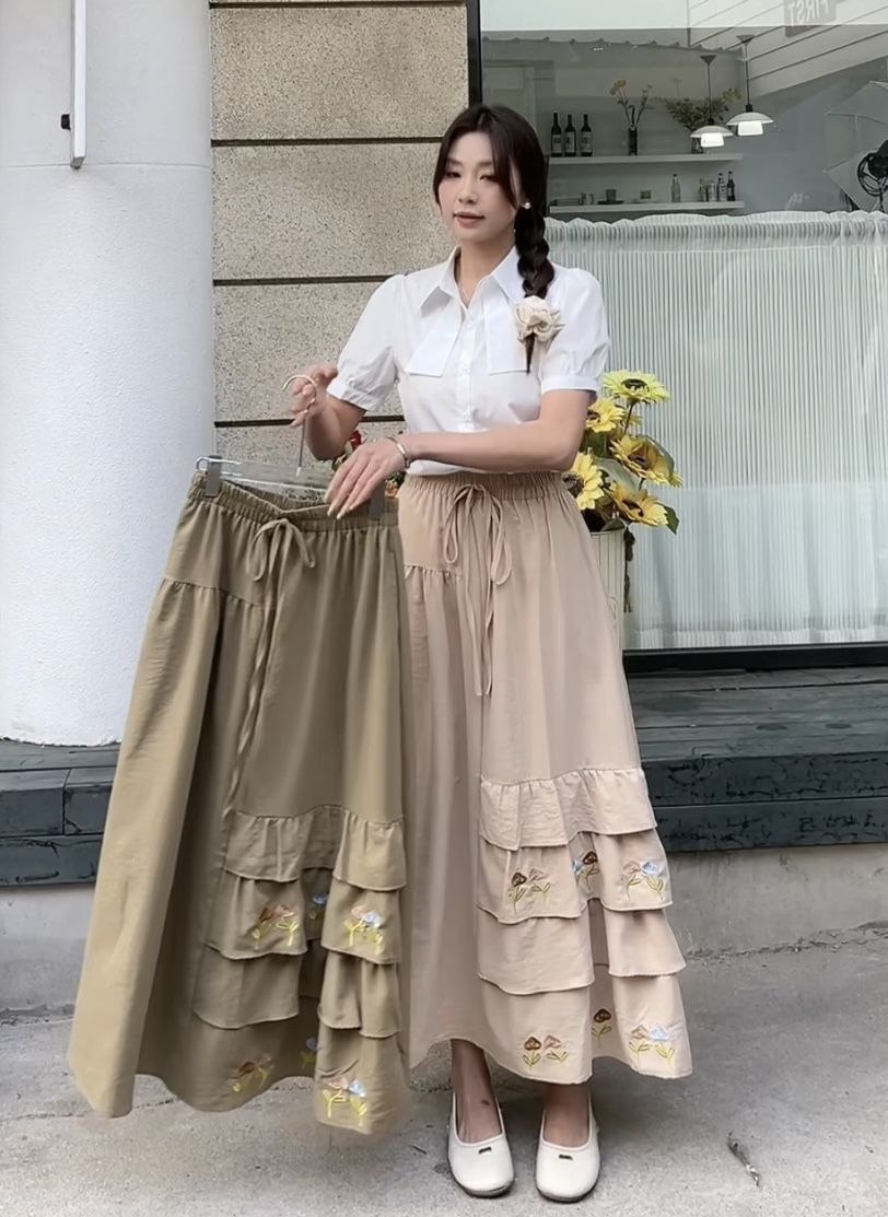 دامن گلدوزی جیب دار جنس لنین